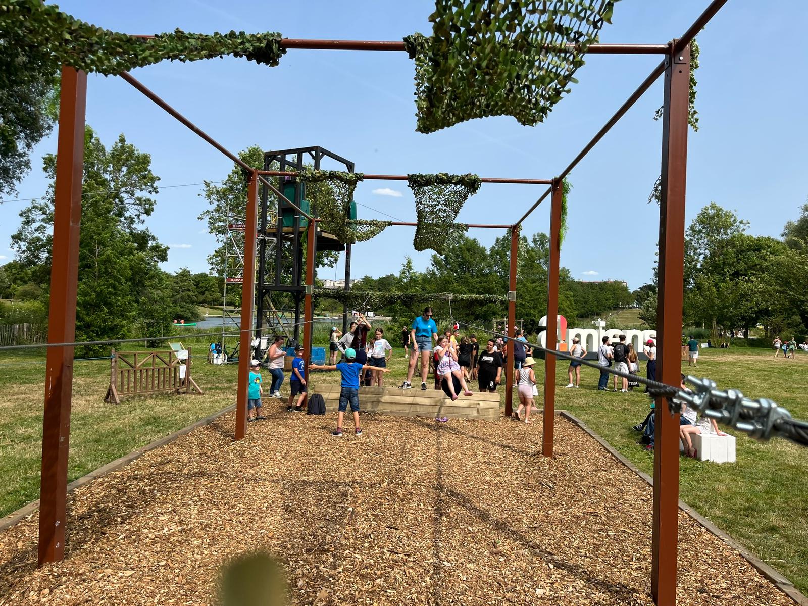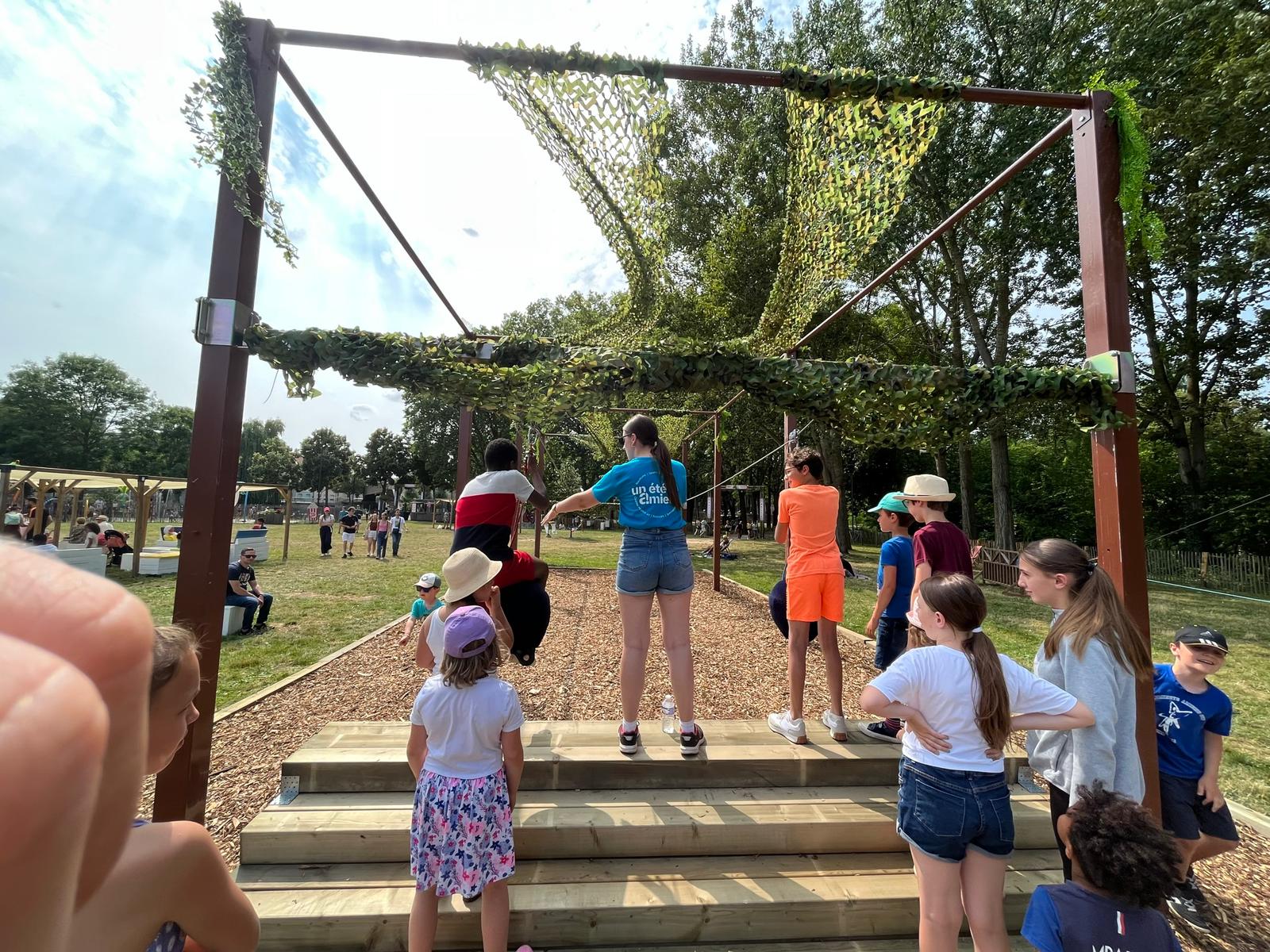 Ce qui rend le Parcours Tyrolienne particulièrement attractif, c’est son accessibilité totale : pas besoin de baudrier complexe, pas de formation préalable, pas de manipulation technique. Les enfants peuvent utiliser l’attraction en autonomie, sous le simple regard bienveillant des parents ou accompagnateurs. Cette simplicité permet une rotation rapide et fluide des participants, évitant les files d’attente et maintenant un niveau d’énergie et d’enthousiasme élevé tout au long de l’événement.