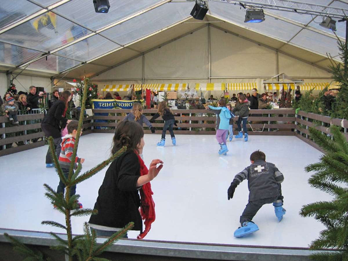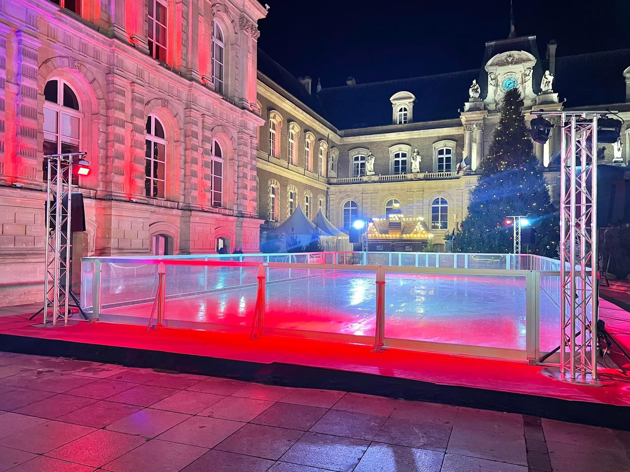 L’éclairage LED intégré transforme la patinoire en espace magique en soirée, particulièrement apprécié lors des événements hivernaux ou festifs.